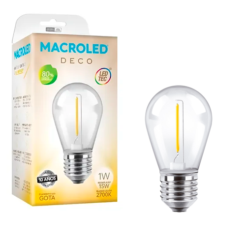 Lámpara Gota Led Filamento 1w E27 Luz Calida Macroled